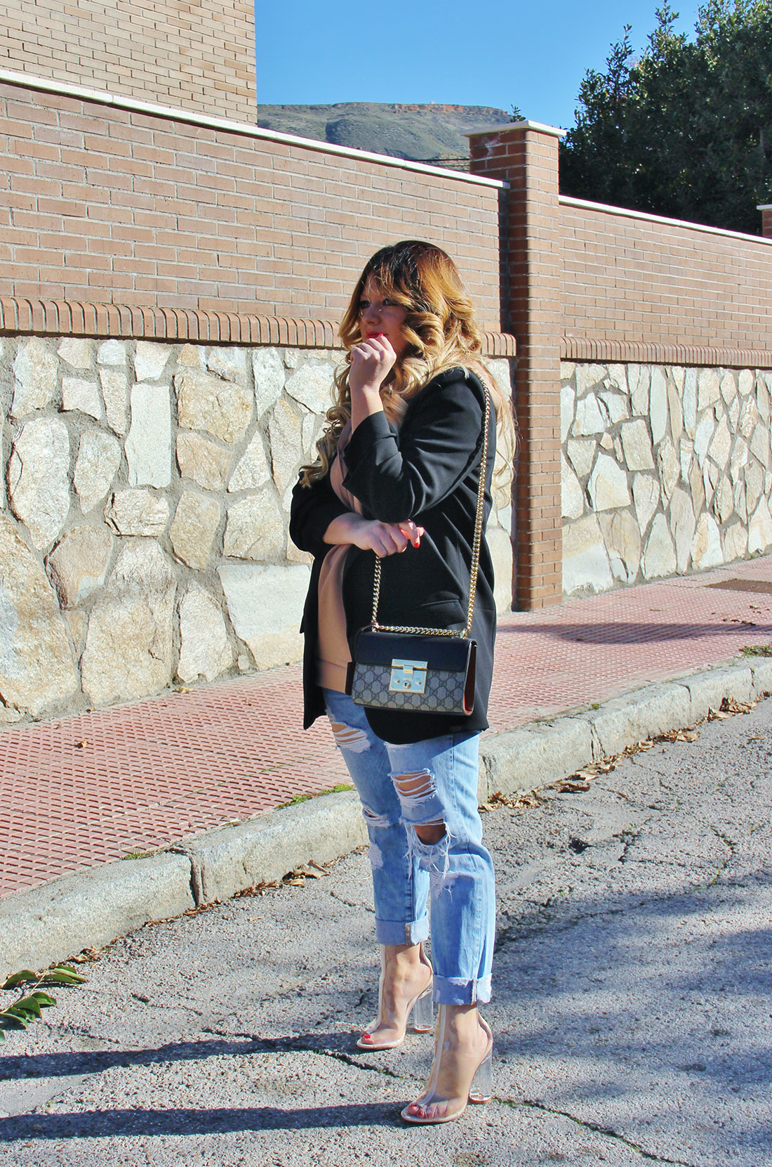 Me encanta la combinación de jeans con zapatos de tacón. En esta ocasión llevo unas botas de metacrilato, os adelanto que van a  ser tendencia las próximas temporadas 😉